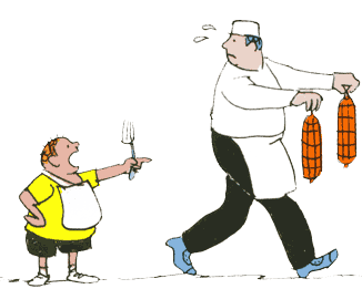 Sit, chat, pay, sir . . . Agee's cartoonlike drawings bring out the